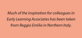 Much of the inspiration for colleagues in Early Learning Associates has been taken from Reggio Emilia in Northern Italy and it continues to act as one of our main reference points for our ongoing work in early childhood education. Like Loris Malaguzzi in ‘Hundred Languages of Children: Reggio Emilia Approach – Advanced Reflections’ (1998) we hold the view that,